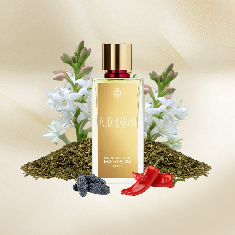 Un floral alb luminos – Aldebaran miroase a tuberoză cu fațete lactonice și petale proaspete, încălzite de un suflu fin de paprika și rotunjite de tonka. Curat, mătăsos și irezistibil de modern.